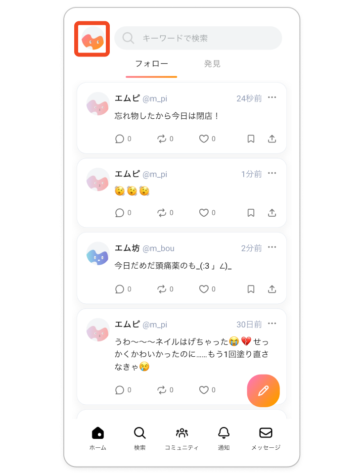 1. アプリの右下にアイコンをタップし、プロフィール画面を開きます。