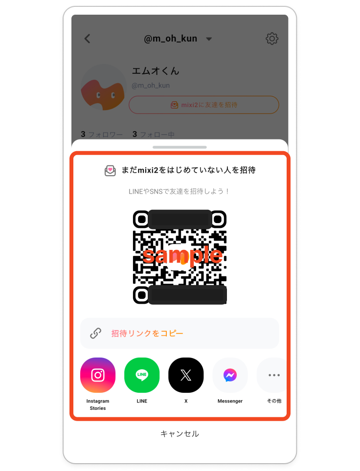 既にmixi2を利用している方は、招待リンクを発行して友人や知人を招待することができます。